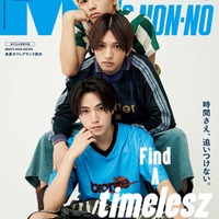 3人が揃って登場するのは、「メンズノンノ」はもちろん、実はメンズ誌初。「いつもより男らしく、あるいはアンニュイな表情を意識しましたね。女性ファンの方々にも男性ファンの方々にも喜んでもらえたら嬉しいです」(篠塚)、「ちょっといつもよりワイルドな自分が見られるかもしれません…?」(猪俣)、「雑誌の雰囲気がかっこいいから、寄りのカットでも普段より力強い感じを出しました」(橋本)。まさに“時を超える”輝きを放つ、橋本、猪俣、篠塚による「メンズノンノ」でしか見られない新しい表情を見ることができる。これまで、現在、これからについて率直に語ったインタビューも見どころだ。