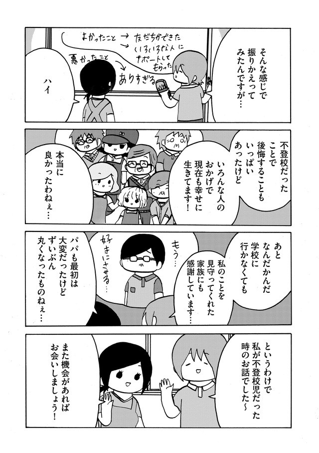 幼稚園を中退し、小学校・中学校・高校に行かなかったものの、一念発起して大検を受検し、大学に進学するまでを「不登校児本人」が描くコミックエッセイ。