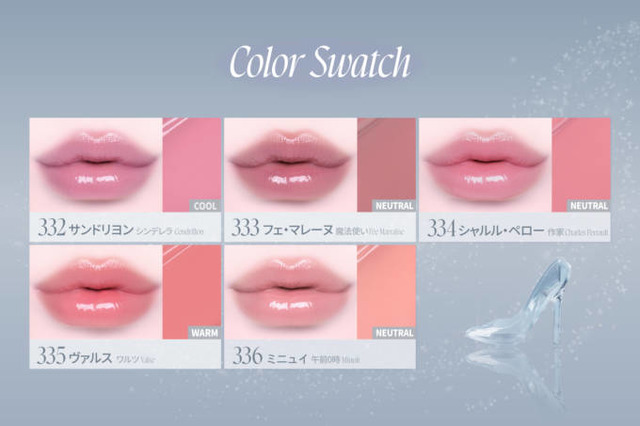 #332 Cendrillon:ベージュを一滴落としたライラックモーブ#333 Fée Marraine:深みのあるオートフィグ#334 Charles Perrault:大人のローズミルクティー#335 Valse:繊細でみずみずしいハニーピーチピンク#336 Minuit:上品さのあるくすみアプリコット