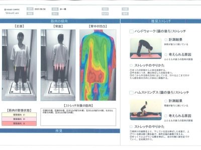 最後にパワープレートで「からだバランス画像解析」で指摘された身体のバランス補正ポイントの鍛え方を教えてもらいます。これでコース一式終了、最後にカウンセリングを受けて終わります。