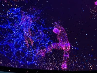 フィールドを駆け巡るサッカー選手など、クウェートにまつわるさまざまなアイコンが登場します。約5分ほどの星空体験にすっかりリラックス!