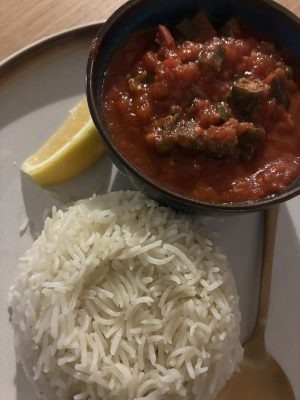 マラク・バミア 3820円 同 これは私が一番気に入ったプレート。オクラとトマトのさらりとしたカレーです。
