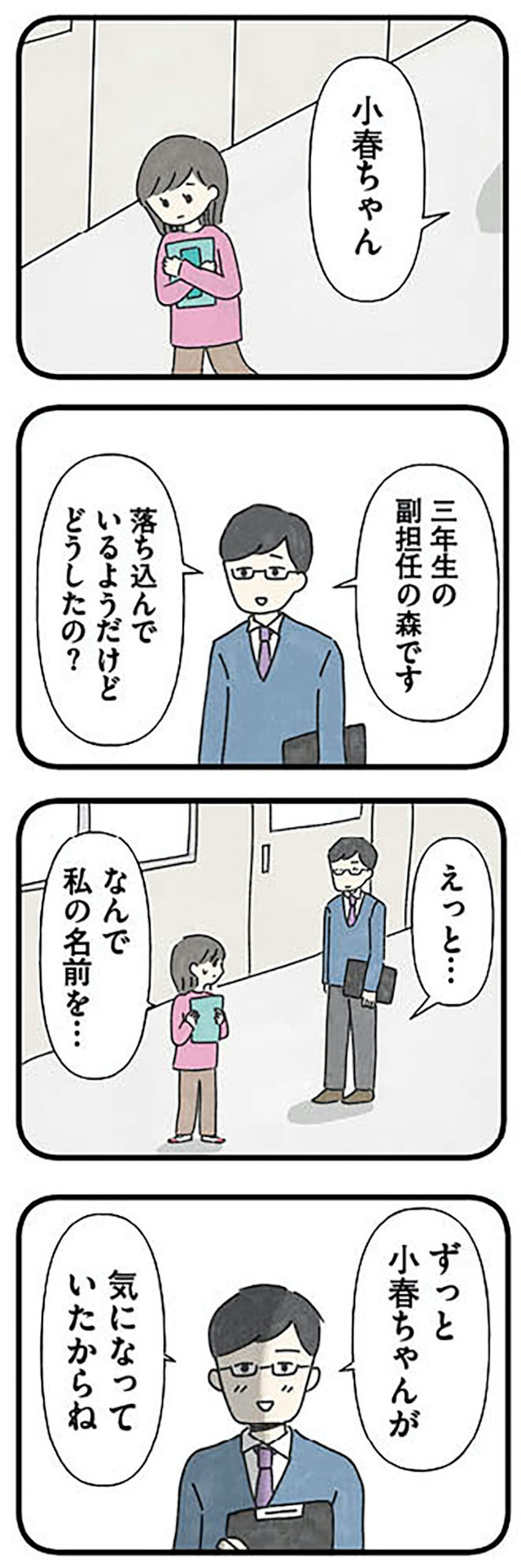 ある日、娘の成績が落ちていることに気付いた真美は、塾に通わせることに。小春を連れて塾へ行くと、娘の小学生時代の副担任・森先生に再会する。