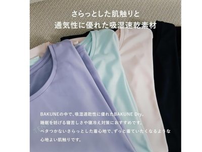 【BAKUNEドライタイプ上下セット】ホットフラッシュなど寝汗が気になるならこれ! 吸湿速乾素材です
