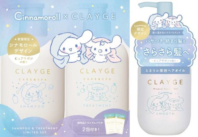 CLAYGE(クレージュ)が、サンリオの人気キャラクター「シナモロール」とコラボした限定デザインの『シャンプー&トリートメント SR』と『ミネラルリペアオイル スムース』を、2025年10月10日(金)より全国のバラエティショップ・一部ドラッグストアにて数量限定で発売する。