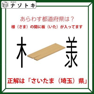 真ん中にあるイラストは「いた(板)」です。つまりイラスト部分は「いた」と読めそうですね。また、左右の漢字は「様(さま)」ですね。