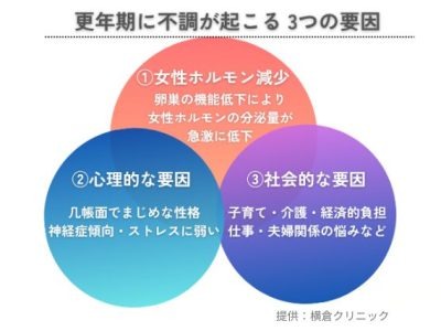 更年期の不調は、女性ホルモンが減少することによって、自律神経が乱れて起こるというのは広く知られています。しかし実際には、ホルモンの減少だけでなく、心理的・社会的な要因も複雑に関係しているそうです。