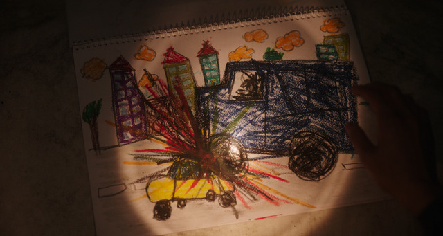 また血を出しながら壁にすがる人物や、足に血痕が付着している赤いワンピース姿の女性も写しており、どれもホラー要素たっぷりなカットとなっている。