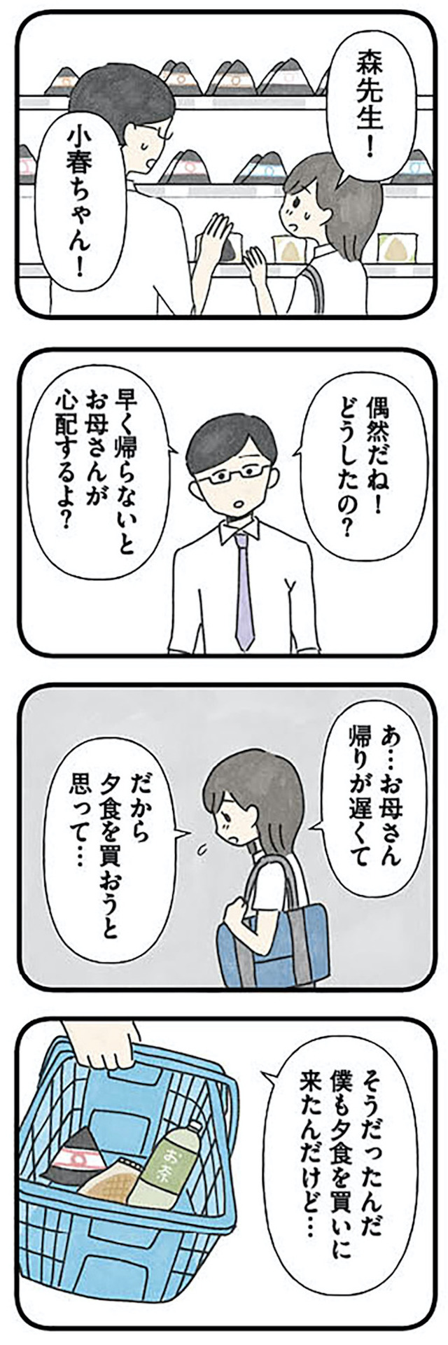熱心に小春に勉強を教えてくれる森先生。おかげで小春の成績も上がっていき、安心していたが、小春が「ママに会わせたい人がいる」と言い、交際相手として連れてきたのはなんと塾長の森先生だった…。
