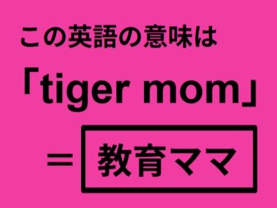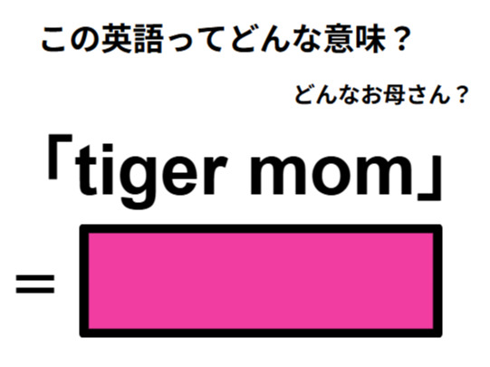 tiger mom  直訳すると「トラ母さん」ですがこれは、たくさん習い事をさせたり、厳しい教育や訓練をさせることで子どもを成功に導こうとする熱心すぎてしまうお母さんのことをさします。アジア系に多いイメージですね。