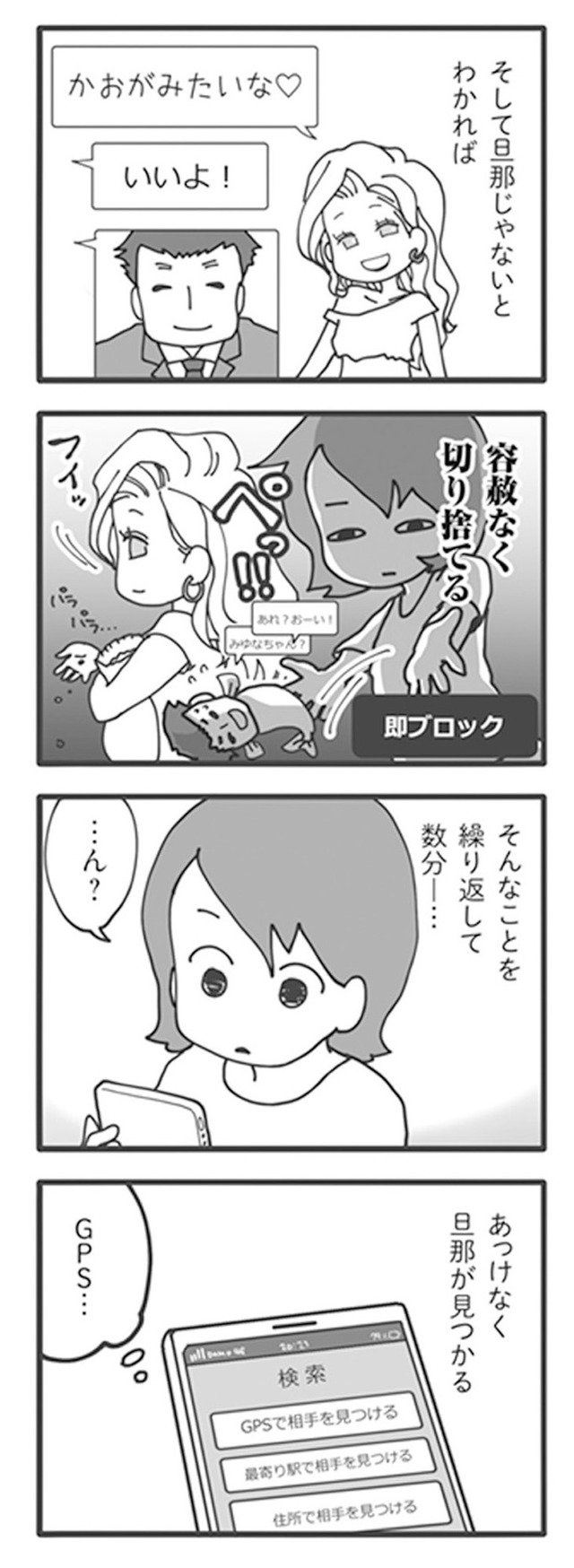 通知を隠しもせずアプリを続けるその神経に怒り心頭の嫁は、旦那の好みの女性になりすまし、潜入捜査を開始する!