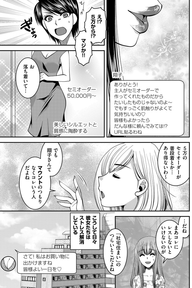しかし同時に【平社員の妻の会】のトークルームでは、翔子の言動とパンチの効いた顔をディスるメッセージの嵐で……!?