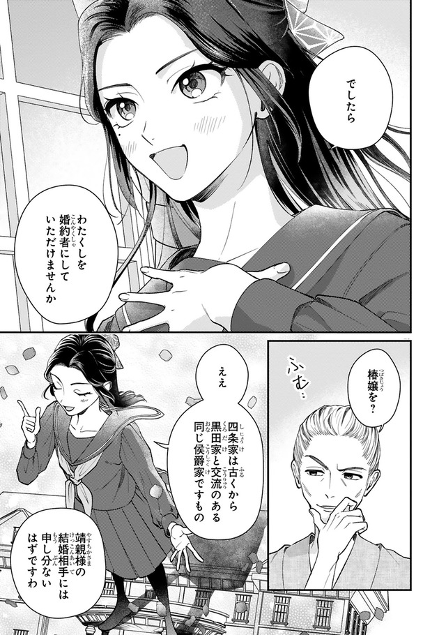 和モダンな世界を舞台にした秘密のロマンス! 家族経営のカフェーが全焼し、窮地に立たされた栗橋光。そんなとき、成金の資産家・剣菱家から、駆け落ちした一人娘・芳子として、華族である黒田家の嫡男・靖親の婚約者のフリをしてほしいと頼まれる。光は家族のために、靖親の婚約者としていっしょに暮らしはじめるが…。「第1回フレックスコミックス漫画原作大賞」金賞を受賞した極上のラブストーリーをお楽しみください!