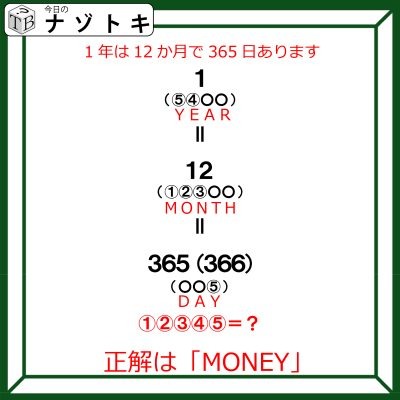 クイズです!「365=12=1といえば?」かっこに入るものを導きましょう【難易度LV3.・中辛】 | NewsCafe