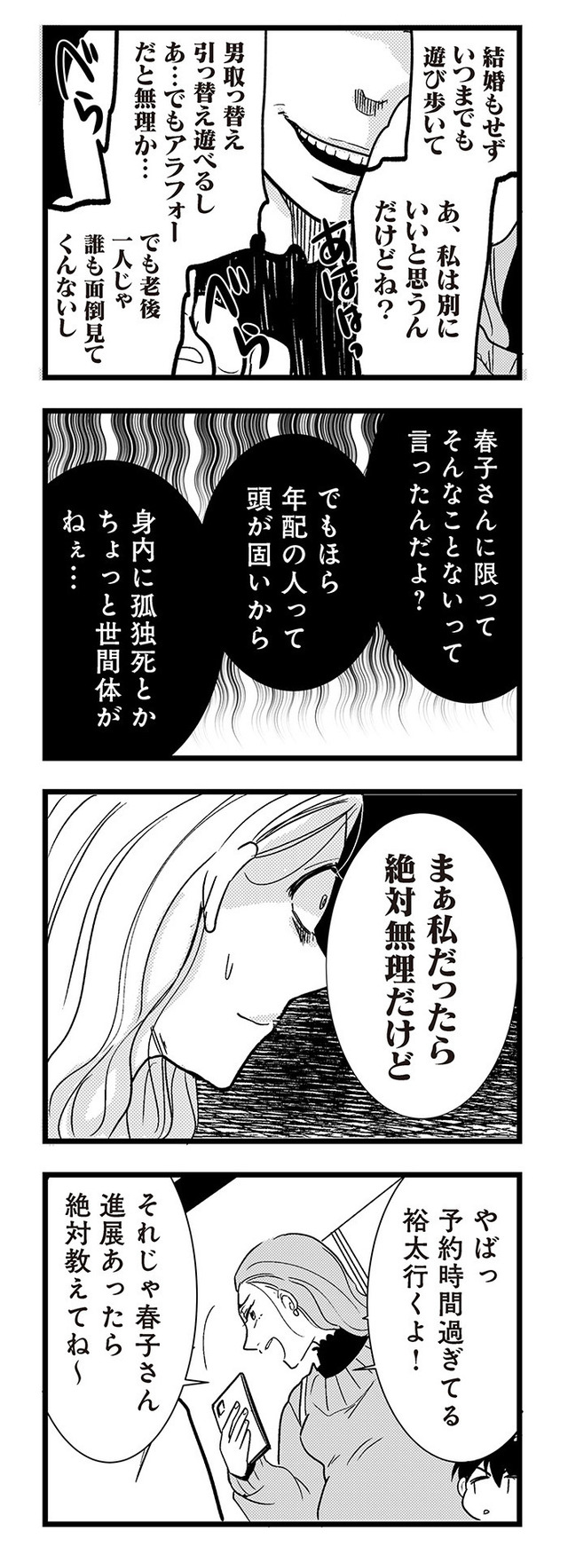 ところがある日、晃平から「これからは平日に会わない?」という謎な提案が…。胸に不安を抱えつつも彼を信じようとする春子。
