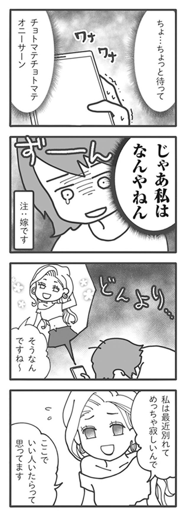 ※本記事は原案・もなか、イラスト/漫画・蒼衣ユノの電子書籍『旦那がマッチングアプリでやりとりしてる相手は嫁です』から一部抜粋・編集しました。