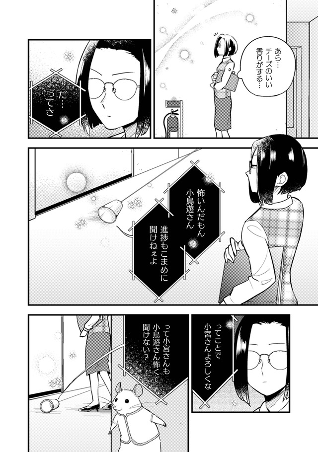 考えすぎOLは喋るネズミをトレーナーにコミュ障を克服できるか?コミュ障OL小宮さんは、ある朝、駅でお菓子をぶちまけてしまう。それを口にしたネズミの根津さんは、空腹を満たしてくれた小宮さんに「お礼に何か願いを叶えてさしあげましょう」と申し出る。思わず「コミュ障を治したい」と答えた小宮さんは、根津さんの助言のおかげで、徐々に他人に話しかけるようになる…一人と一匹のハートフルコメディをお楽しみください。