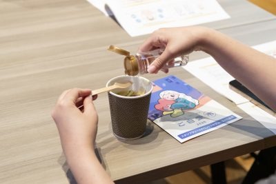 「毎日オイルを取り入れるには、味噌汁が簡単です。具は、豆腐や野菜などお好みで選んでください。アマニ油は小さじ1、MCTオイルなら小さじ1/2でOK。2種類同時に入れても良いですが、油っぽくならないように気をつけて」と齋藤先生。参加者が慎重にオイルの量を調整しながら味噌汁へ入れて試食をすると、大きくうなずき、満足感そうに飲み干す様子があちこちで見られました。