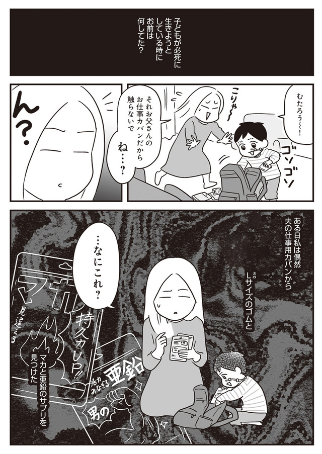だが、夫の鞄から精力剤と避妊具を発見。問い詰めていくと夫の本性が発覚し…。
