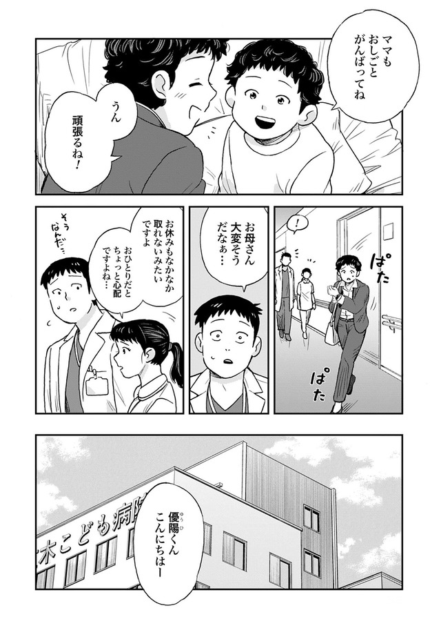 静かにママを待っている入院中の男の子。面会時間ギリギリにやって来たママに嬉しそうな顔!【チャイルドリリーバー #13】