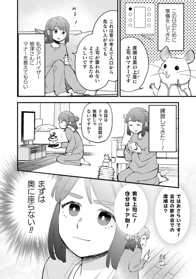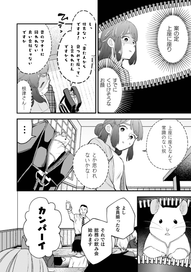 考えすぎOLは喋るネズミをトレーナーにコミュ障を克服できるか?コミュ障OL小宮さんは、ある朝、駅でお菓子をぶちまけてしまう。それを口にしたネズミの根津さんは、空腹を満たしてくれた小宮さんに「お礼に何か願いを叶えてさしあげましょう」と申し出る。思わず「コミュ障を治したい」と答えた小宮さんは、根津さんの助言のおかげで、徐々に他人に話しかけるようになる…一人と一匹のハートフルコメディをお楽しみください。