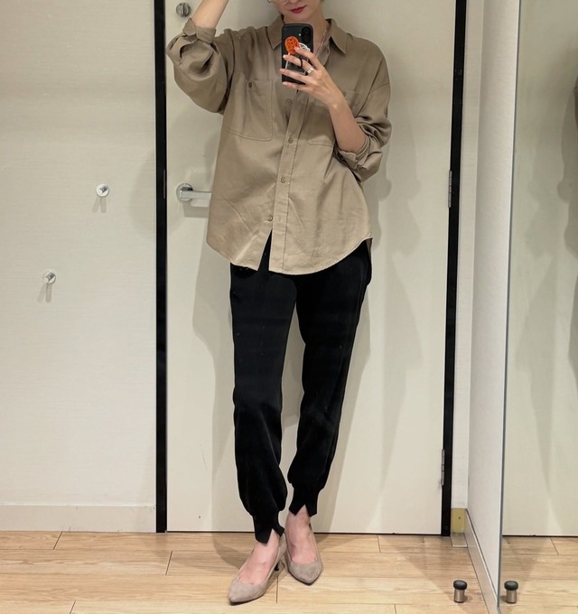 やわらかでドレープ感のあるとろみシャツを主役にした、きれいめカジュアルスタイル。かっちりしすぎず、デニムジャケットよりもやさしい印象で着られるシャツは、羽織りとしてもトップスとしても活躍する秋の優秀アイテムです。