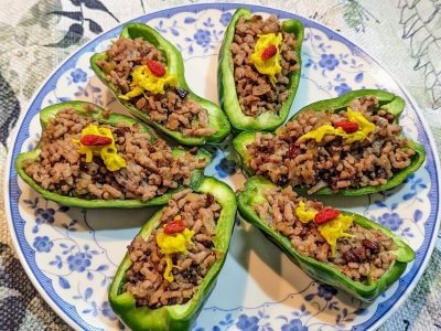 これらの“脾or肺の機能にうれしい食材”を使った土用の時季におススメレシピの1つ目は「生ピーマンのなつめ肉詰め」です。脾の機能(=消化機能)に働きかけるなつめ・ピーマン・豚肉で出来るレシピは…と思いながら豚ひき肉を眺めていた時に思いついたレシピです。