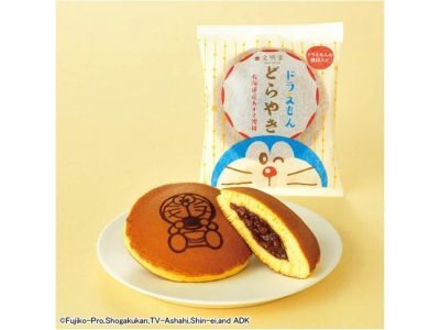 【「ドラえもん」のどら焼き】焼き印のドラえもんも、どら焼き食べてる! カステラで有名な「文明堂」だから、味は安心♪