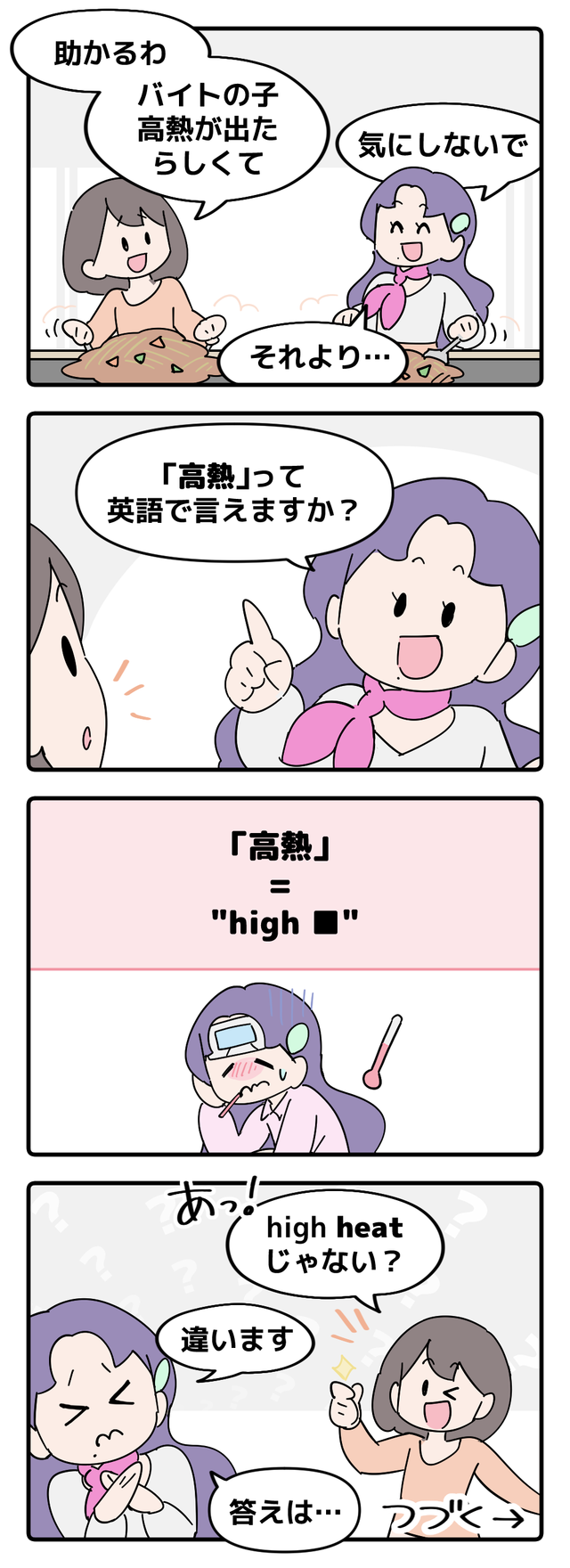 「英語嫌いな日本人をなくしたい!」海外生活や添乗員経験、そしてバイリンガル子育て中の英会話講師・Mrs.服部が、身近な英語表現を漫画&クイズ形式でお届け! 「間違ったら恥ずかしい」じゃなく「伝わればOK」。使えるフレーズをマンガで学びましょう!