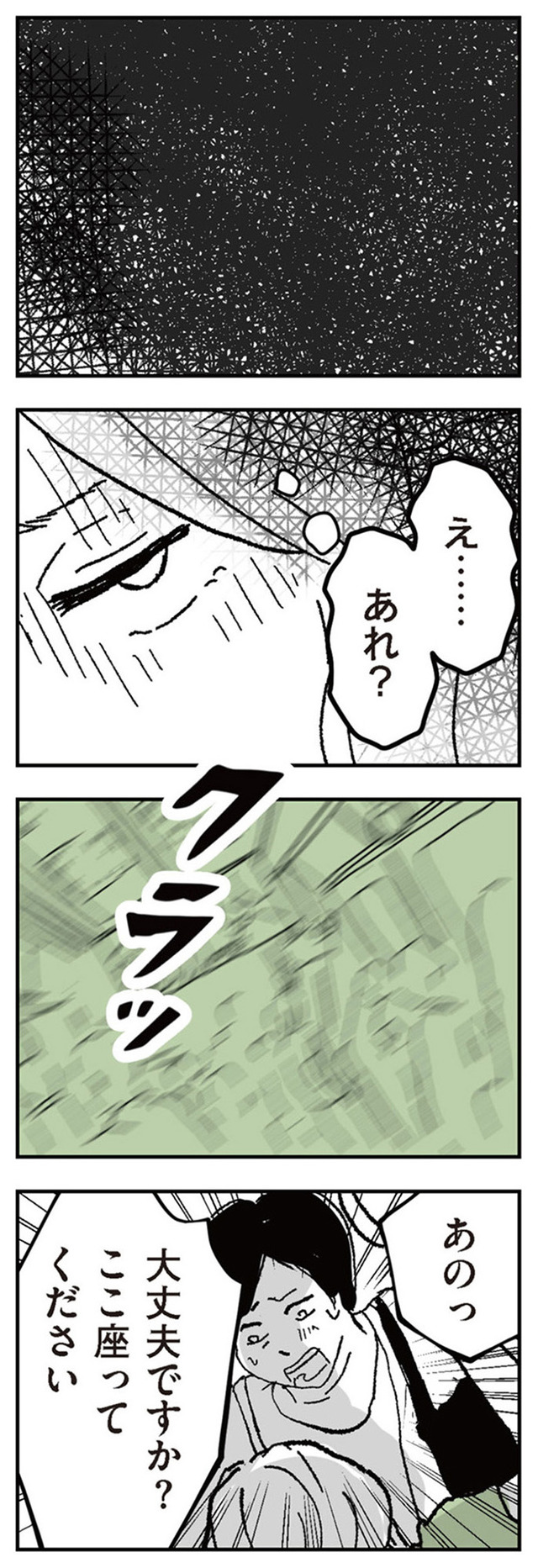 そんなある日の帰り道、電車内で激しい頭痛に襲われ、座り込んだまま終点まで行ってしまう。