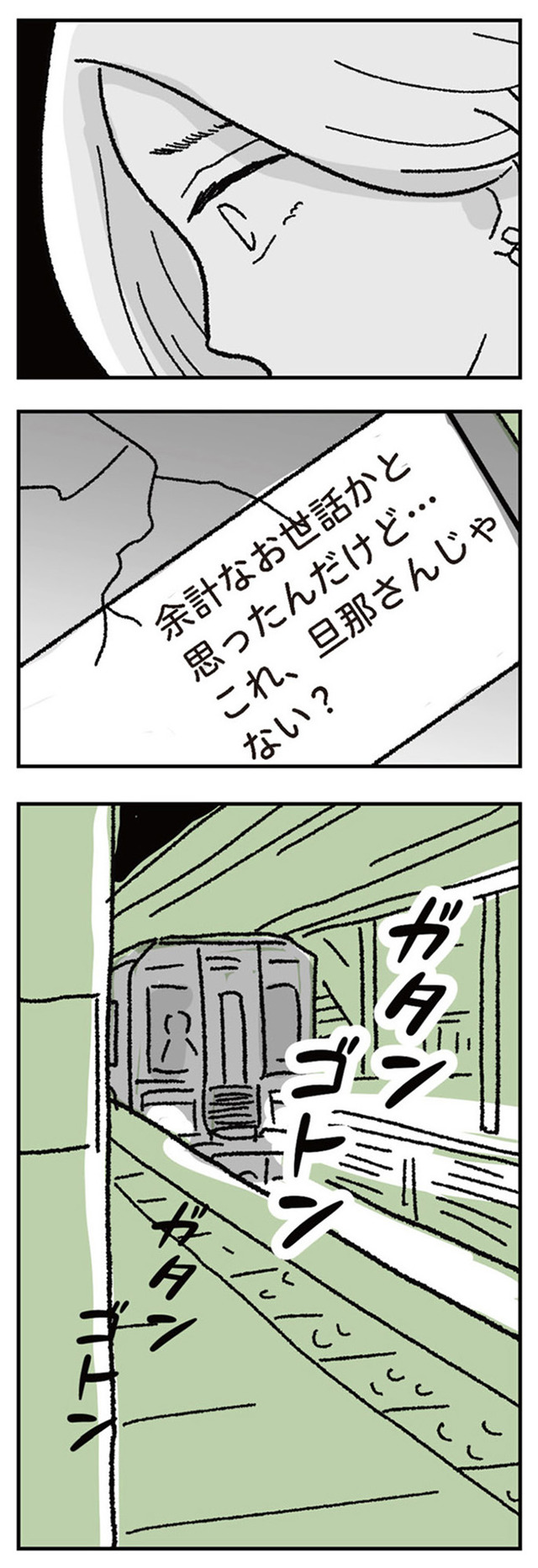 「これ、旦那さんじゃない?」ママ友から送られてきた写真に写っていたのは、女性とホテルに入ろうとする夫だった…【わたし、迷子のお母さん #6】 全 1 枚 拡大写真