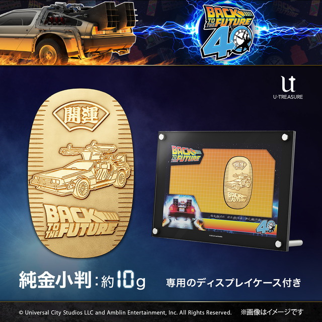 公開から40周年を迎えた『バック・トゥ・ザ・フューチャー』の記念小判が、12月29日(月)まで期間限定で予約受付中だ。今回発売される小判は、約10グラムの純金製。シリーズ3部作それぞれの劇中に登場するタイムマシンと作品ロゴがデザインされている。また、40周年記念ロゴを配した、専用のディスプレイケースも用意。価格は、528,000円(税込価格)となっている。『バック・トゥ・ザ・フューチャー』40周年記念 小判(Part1モデル/Part2モデル/Part3モデル)は12月29日(月)までユートレジャーオンラインショップ、ユートレジャーコンセプトストア池袋にて予約受付中。