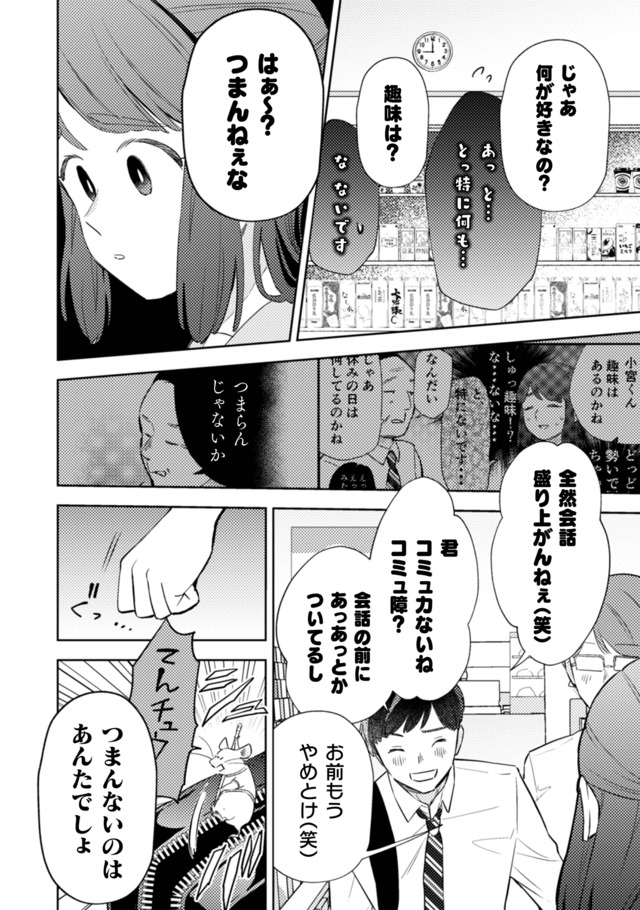 考えすぎOLは喋るネズミをトレーナーにコミュ障を克服できるか?コミュ障OL小宮さんは、ある朝、駅でお菓子をぶちまけてしまう。