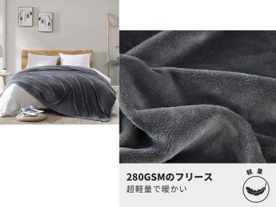 やさしい手触りの「高性能ポリエステル」100%。毛玉や静電気の心配ナシ♪  薄くて軽いのにあったか。Amazonで今一番売れてる毛布!