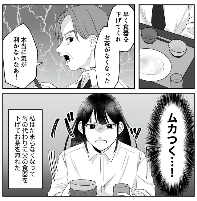 高圧的で文句ばかり言う父、父に逆らえずいつも耐えている母にうんざり…。