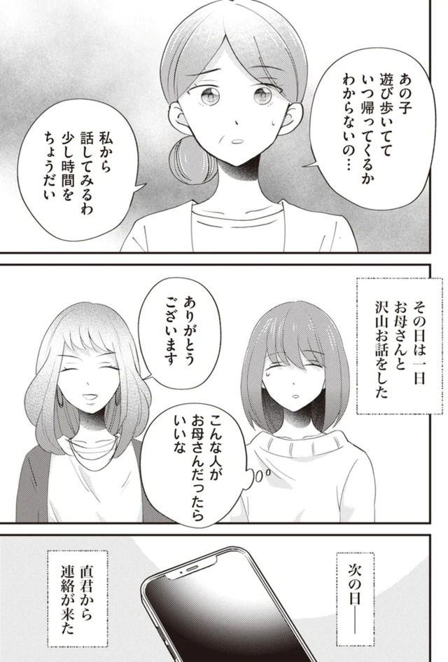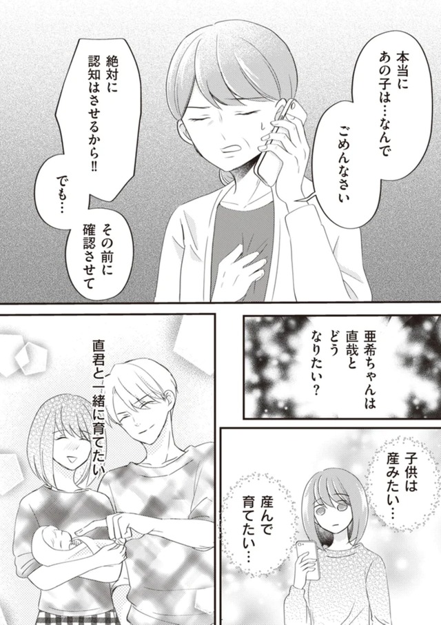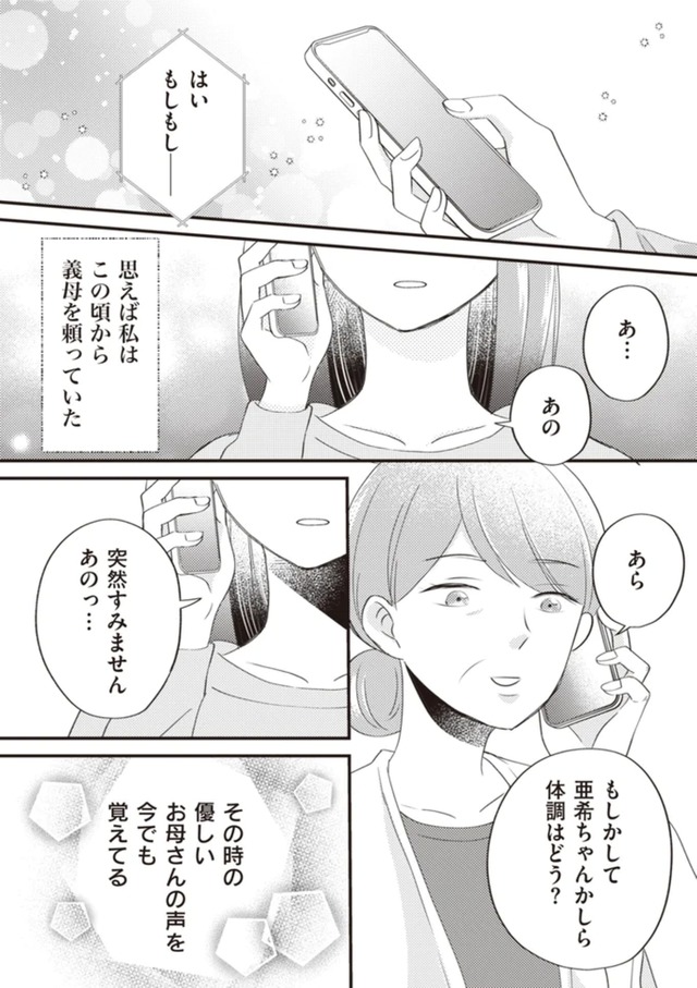 不安で押しつぶされそうな時に優しい義母の言葉に救われ、子どもを産むと決めた亜希だが、直哉の身勝手な行動に振り回されて……。