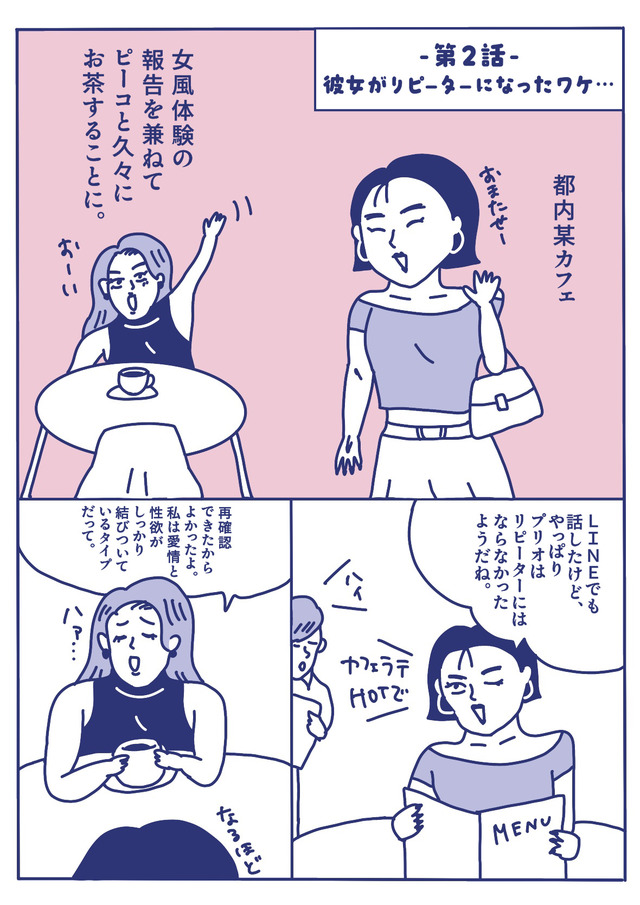 今回はプリオの友人ピーコがどうして女性用風俗のリピーターにまでなったのか。