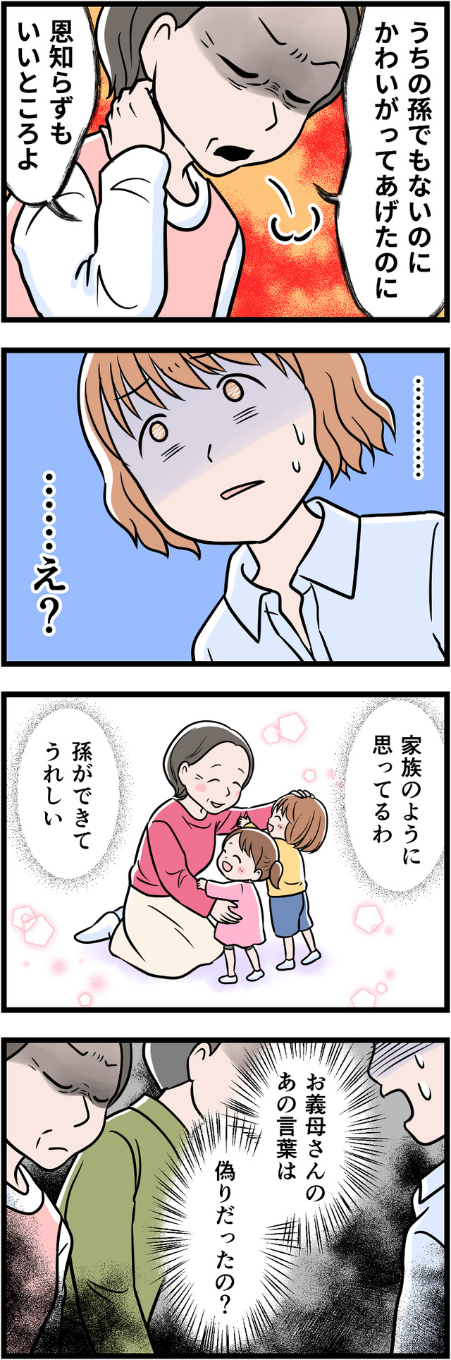 子どもだちの前でも暴言を吐くようになった彼。「再婚さえしなければ、こんな思いはしなくてすんだのに……」その思いが募り、Eさんは覚悟を決めて、義理の両親に相談に行くことにしました。
