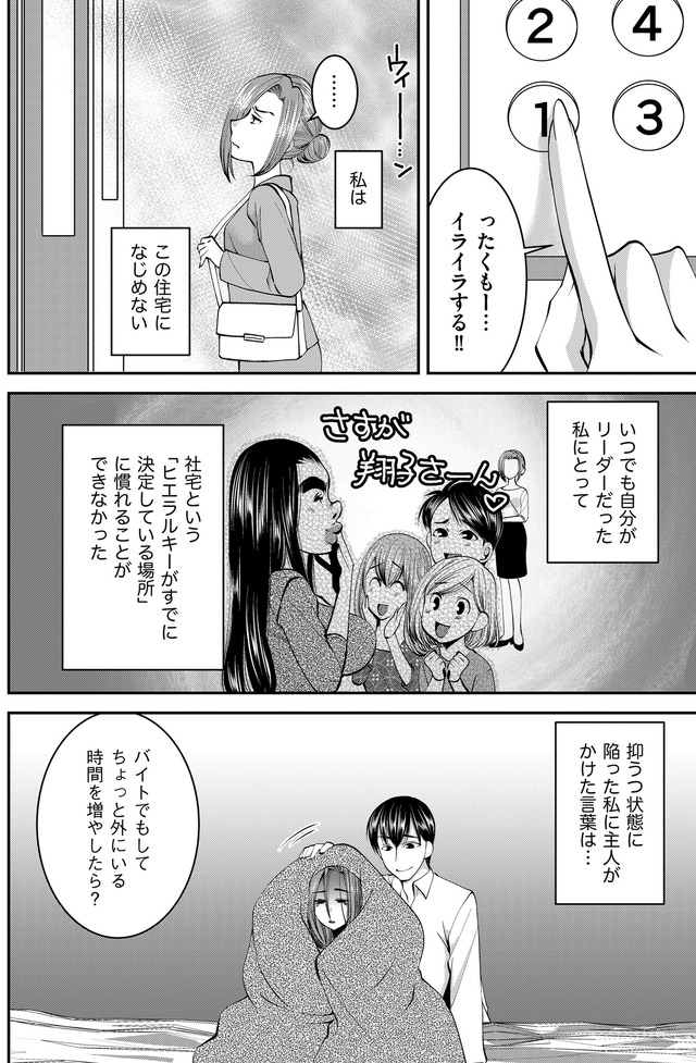 しかし同時に【平社員の妻の会】のトークルームでは、翔子の言動とパンチの効いた顔をディスるメッセージの嵐で……!?