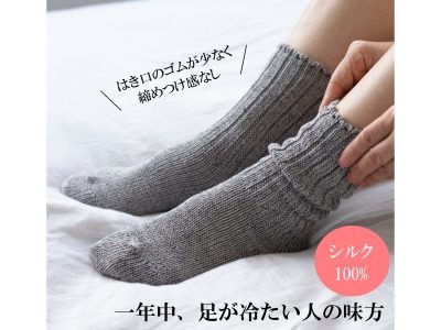【湯上がりシルク靴下】一年中、足が冷たい人の味方!「天然シルク100%」だから、お風呂上がりに履くと適度に水分を逃して「湯上がりの暖かさ」をキープしてくれます