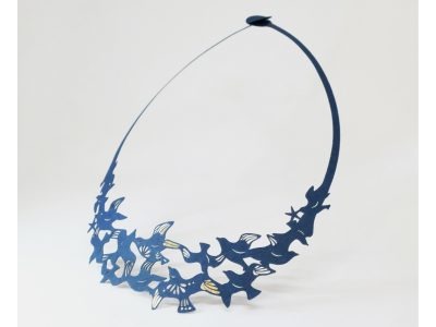 【ネックレス+イヤリング(orピアス)セット】飛ぶカモメたちの間に光る金箔がアクセント。イヤリングとピアスのカモメは、くちばしに輝く星をくわえています♪