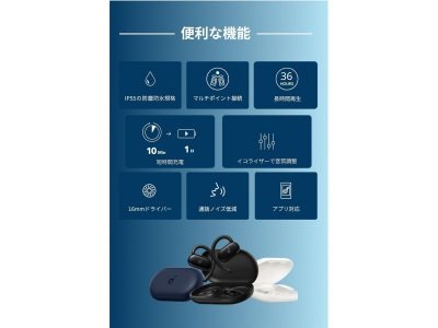 耳に掛ける「イヤーフック」は4段階も角度調整できて耳にフィット! 最大36時間の長時間再生が可能。Amazonで今一番売れている「オープンイヤーヘッドホン」