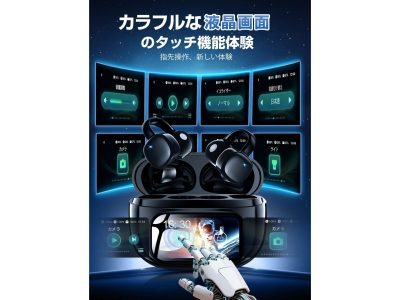 耳をはさみ込んで装着するタイプ。「タッチ画面」つきで充電ケースからいろいろな操作が可能。なんと「93%OFF」中!