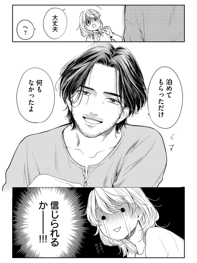 翌朝、目を覚ますとそのイケメンが朝食を作っていて…二日酔いの頭で昨夜を思い出そうとするが、まったく思い出せない。