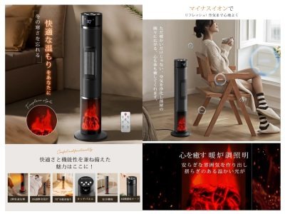 充実の機能が詰まったタワータイプが「88%OFF」中。ポイントは「マイナスイオン機能」! 部屋をあたためながら、ホコリ・花粉・ニオイをオフ。暖炉風の照明機能つきです