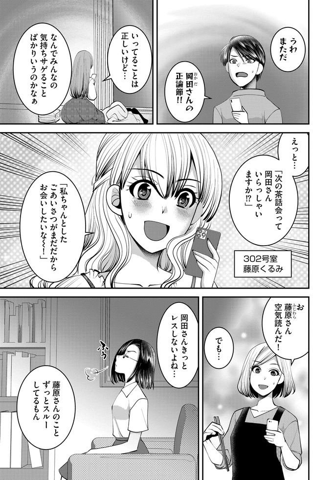 しかし同時に【平社員の妻の会】のトークルームでは、翔子の言動とパンチの効いた顔をディスるメッセージの嵐で……!?