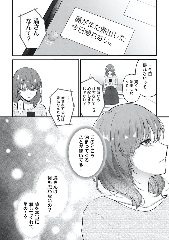 過去に姫奈は元カレに裏切られ、傷心しきっていた時に上司である満に救われる。そしてその後、助けになってくれた満と略奪婚。