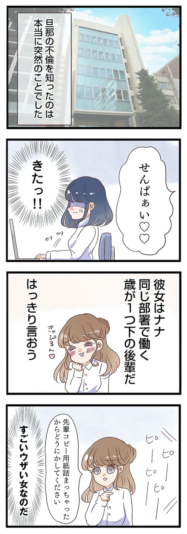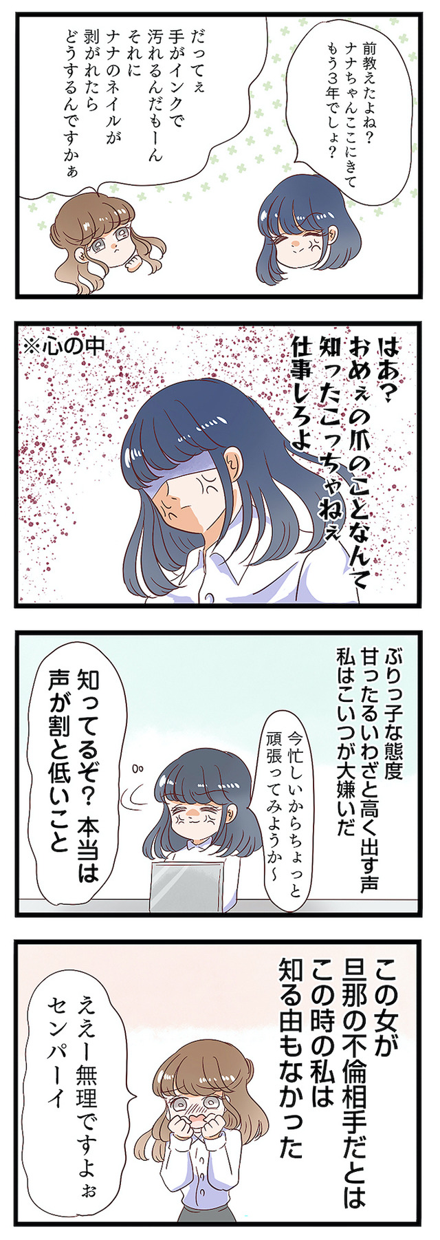 しかも、旦那の不倫相手はイチカが大嫌いな職場の後輩・ナナだったことが判明する。