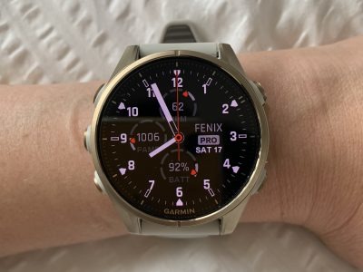 編集部ではこの5月から約半年に渡り、スマートウォッチ元祖の一つ「ガーミン」の端末をメンバー全員がお借りして、それぞれ異なる条件の暮らしの中で「自分を記録することで何がわかるか」実験を続けています。これは私がお借りしたモデルの初期フェイス。