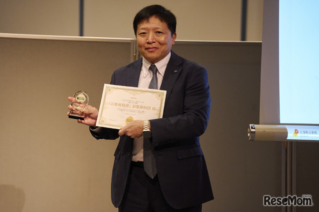 午前11時20分より開催された授賞式では、「グローバルチャレンジ賞」を受賞したJ PREPから代表の斉藤淳氏、「プログラミング教育賞」を受賞したミマモルメから教育事業部の高階由佳理氏、「英語アプリ賞」を受賞したEnuma JAPANから事業本部長の趙南薫氏、「家族の安全・安心賞」を受賞したデジタルアーツからマーケティング本部本部長の谷崎文彦氏、「未来の先生応援賞」を受賞した浜教育財団から浜学園産学連携室室長の長谷川毅氏が登壇。表彰状と記念品のトロフィーがリセマム・リシード統括編集長の田村麻里子より授与された。